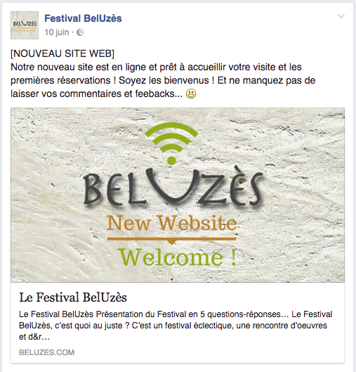 L'organisatrice de ce festival nous approche pour créer entièrement le site Web qui va lui permettre de lancer la première édition de ce festival BelUzès qui invite les artistes belges à Uzès.